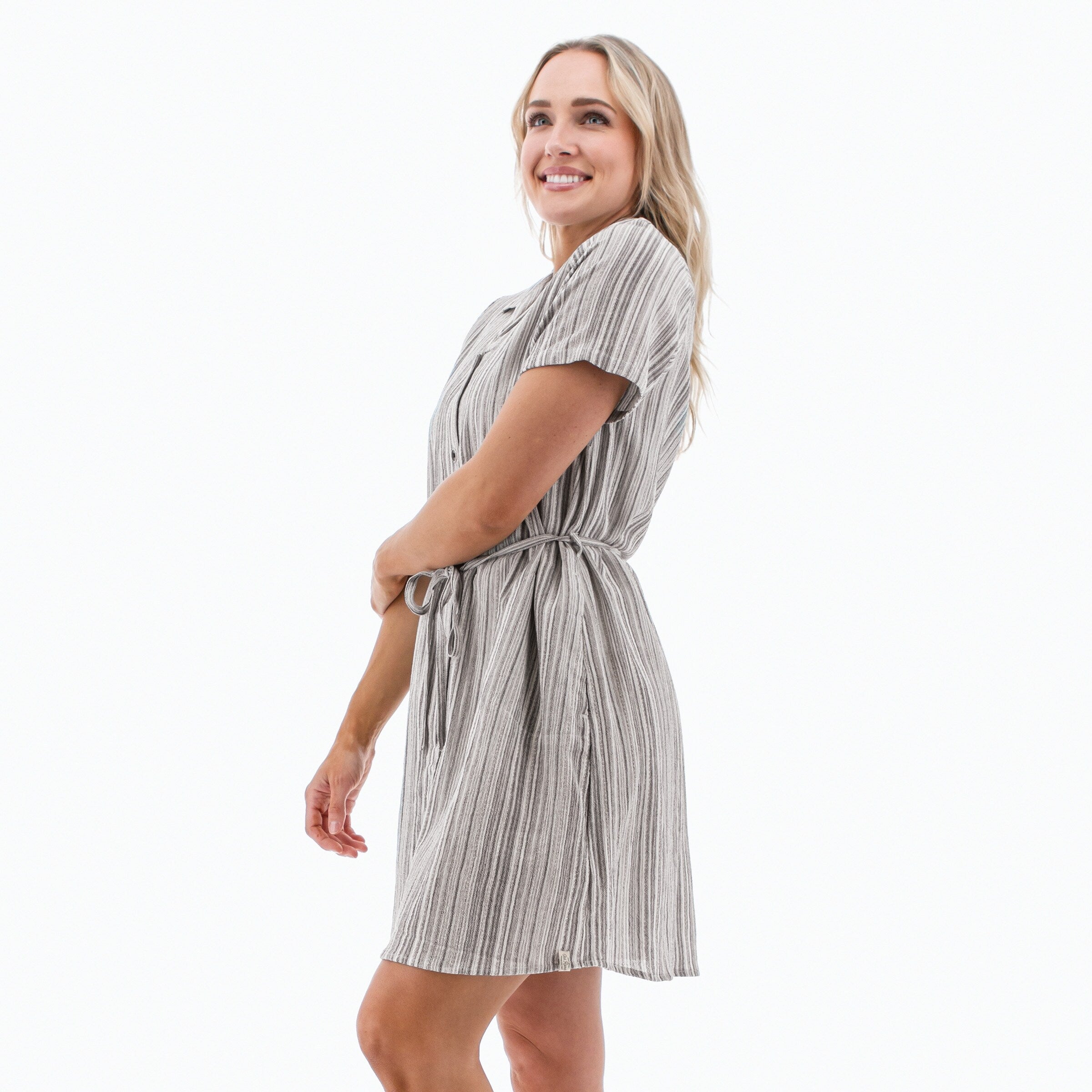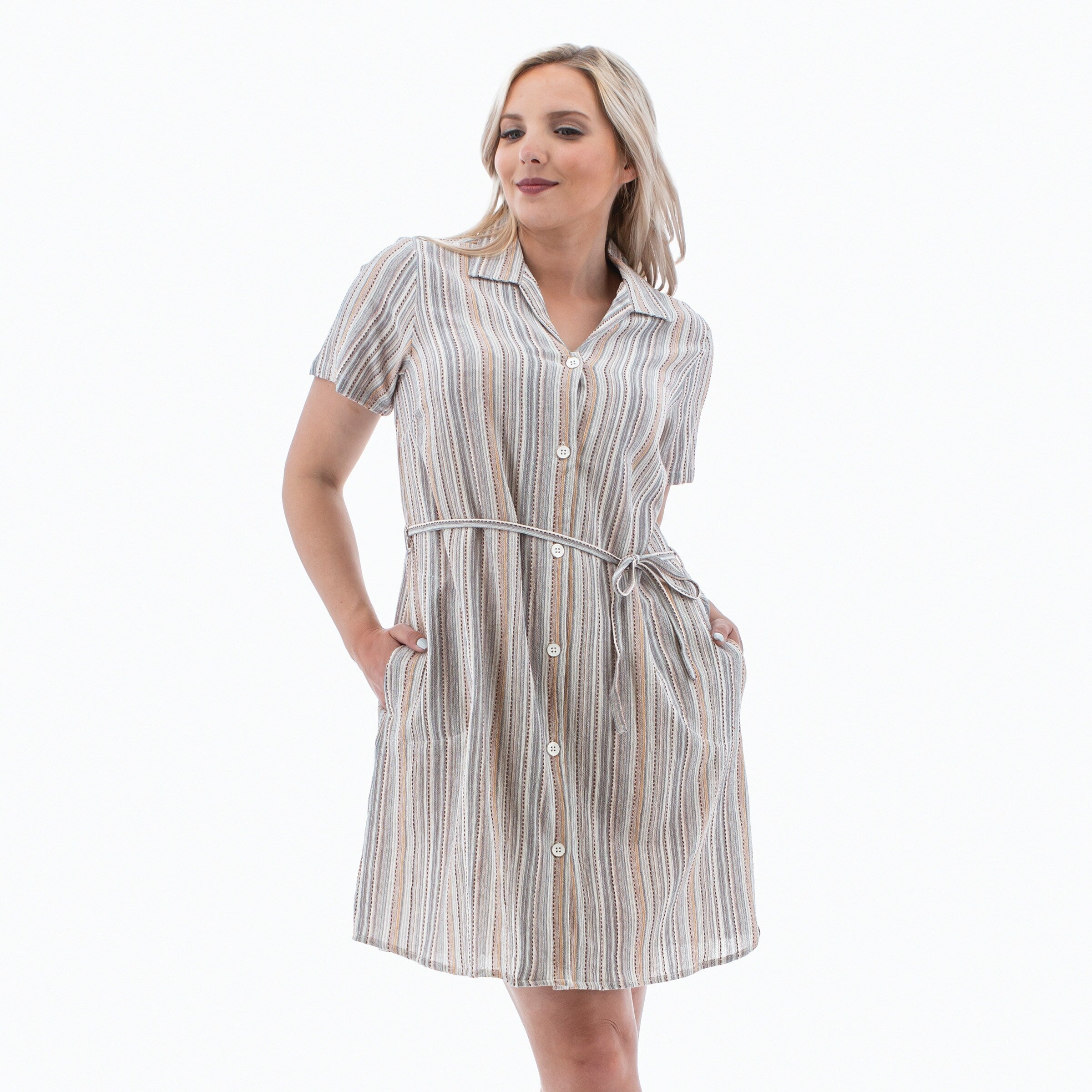Casual, comfortable, and chic – the Lupin Dress has it all! This style is perfect for warm weather, especially since it is made with 100% cotton. Natural and breathable, cotton helps to regulate body temperature. It’s summer’s favorite fiber! We love the pockets on this dress, though there is so much to love. Enjoy a feminine Y-neck paired with the tailored look of a collar and button-front. The waist tie, which is removable, allows you to cinch the waist and show off your beautiful figure. With 36.5′ of length, this dress is appropriate for get-togethers, running errands, and work.Â